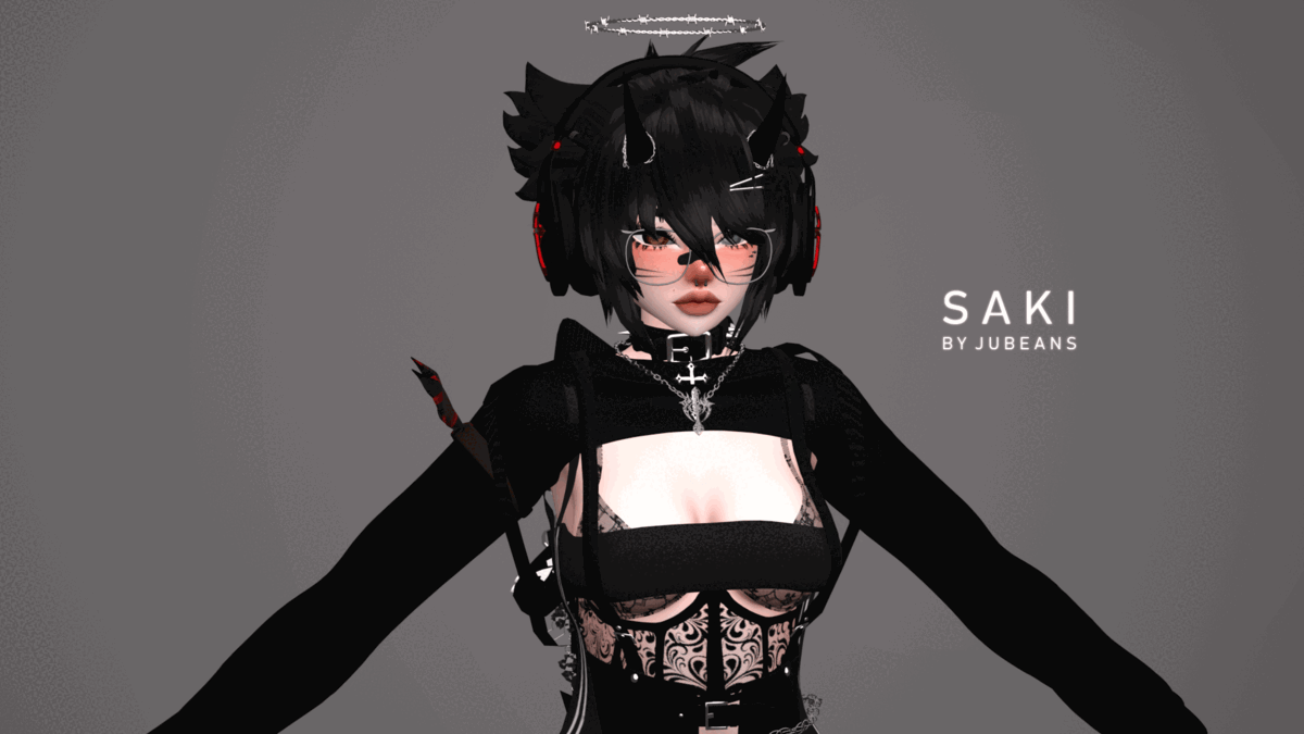 ‣ Dissolve Toggles: pigtails, ponytail, straight, tied, bangs, horns, halo, ears, glasses, bandaid, sweater, bodysuit, gloves, rings, earrings, harness, corset, bra, pasties, chain belt, panties, needle garter, leg wrap, leg band, knife garter, tail, backpack, collar, necklace, headphones, thigh highs, bodysuit sleeves, arm band, full body dissolve